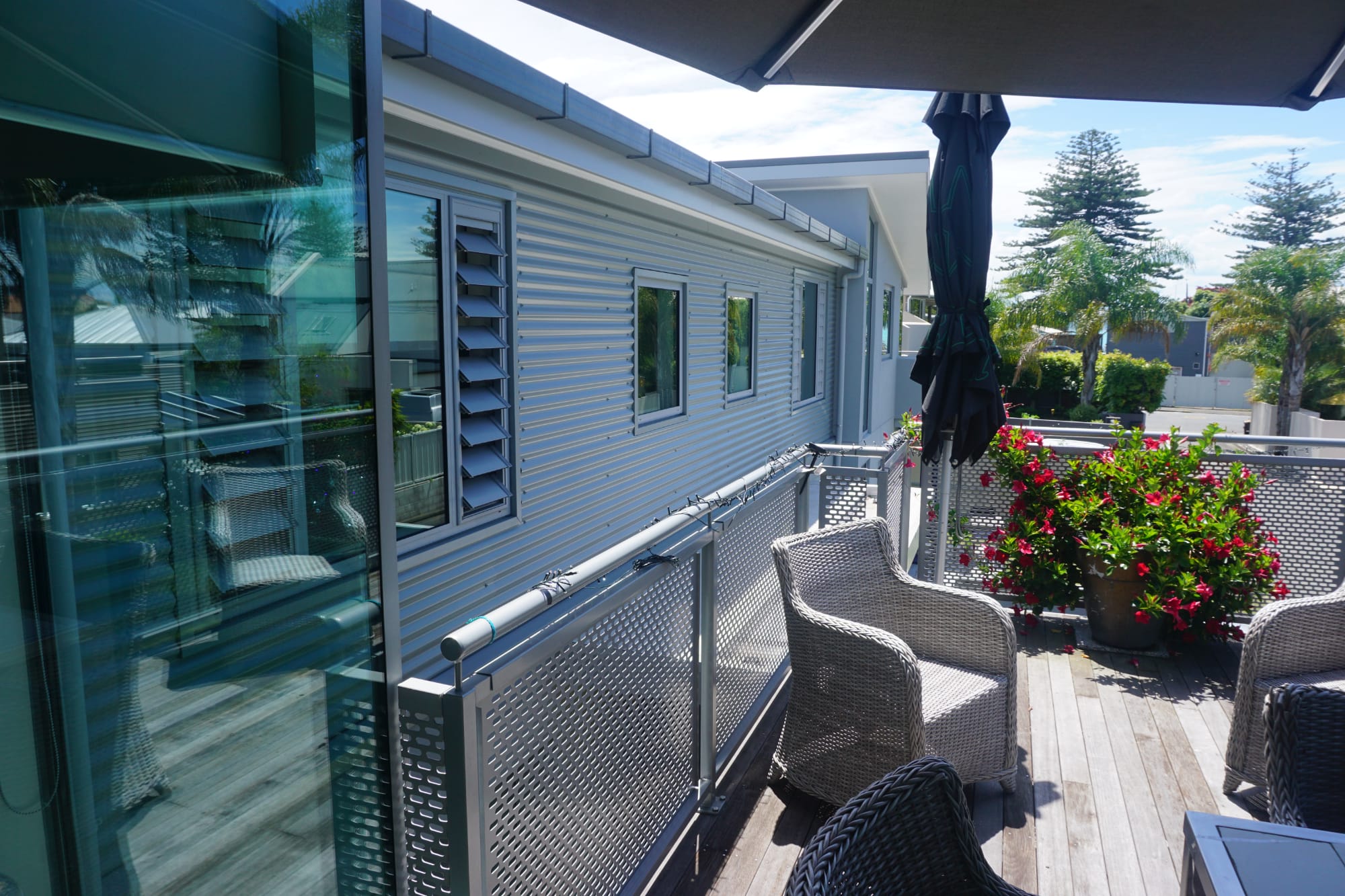 This house was designed to maximize views from the first floor living area across to the coast, to provide first floor external spaces, to present a strong visual presence on the long entrance side of a relatively narrow corner site, and to create an interesting internal route up to the main living and sleeping spaces. The project was successful and the practice is currently working on a two townhouse project for the same clients in conjunction with two additional parties.